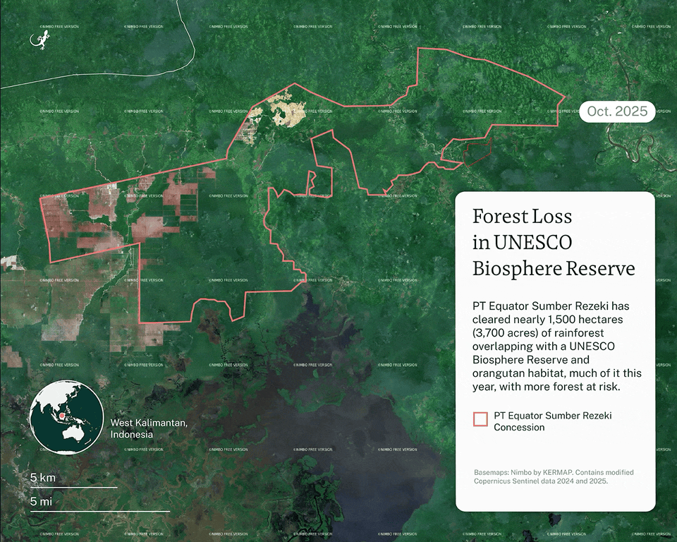 Mongabay (02/12/2025) - KAPUAS HULU, Indonesia — A palm oil company is rapidly clearing rainforest inside a UNESCO Biosphere Reserve that’s home to orangutans and sun bears, adding to concerns over Indonesia’s efforts to curb deforestation.
