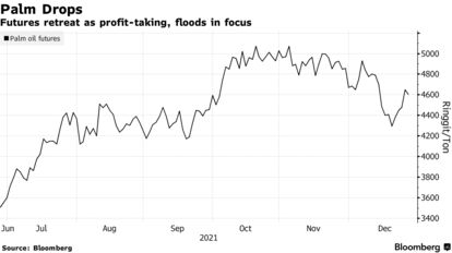 27.12.2021 (www.bloomberg.com) - Palm oil retreated as some investors seek to lock in year-end gains, although concerns remain that floods in Malaysia will curb supplies.